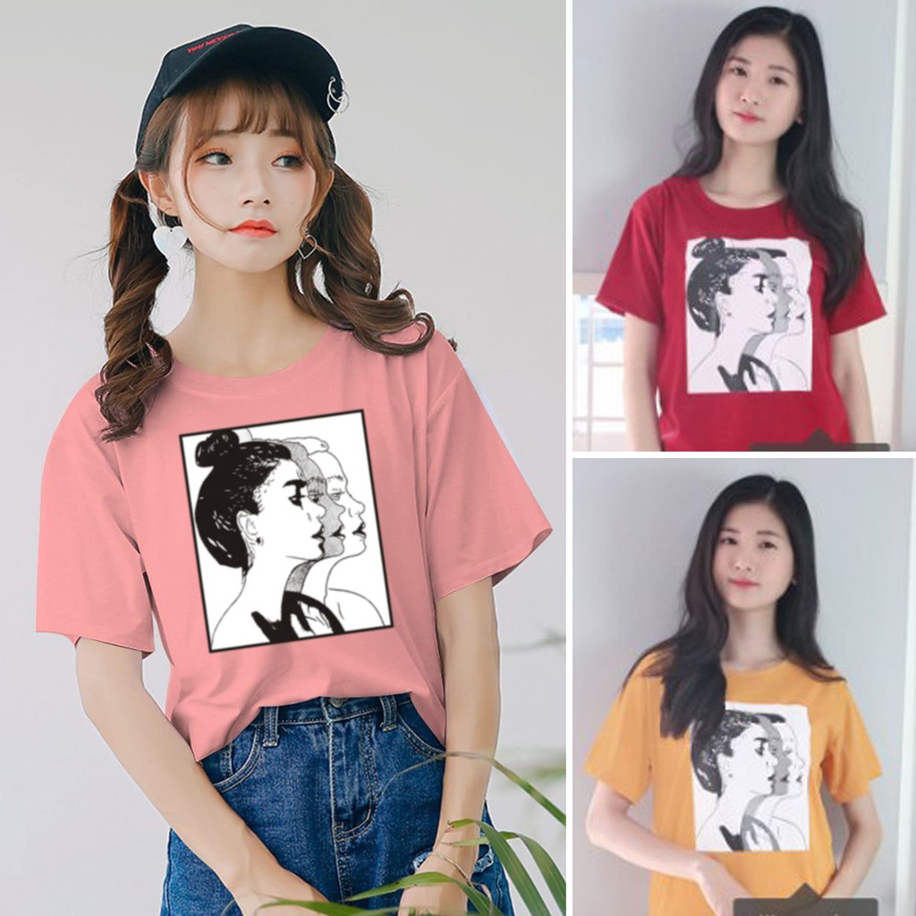 Kaos distro wanita dengan berbagai pilihan model kaos wanita yang sedang trend dipadu dengan warna dan motif yang unik.